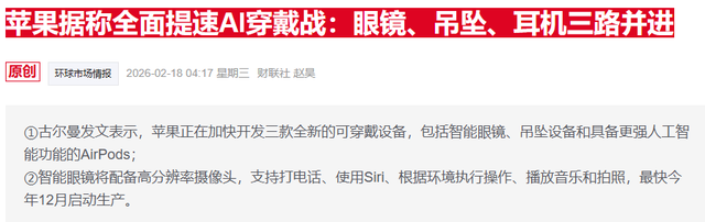 古尔曼提到,苹果还在研发一系列新的AI硬件产品,包括AI吊坠、配备摄像头的AirPods以及智能眼镜——这些产品都将在新版Siri推出之后发布。